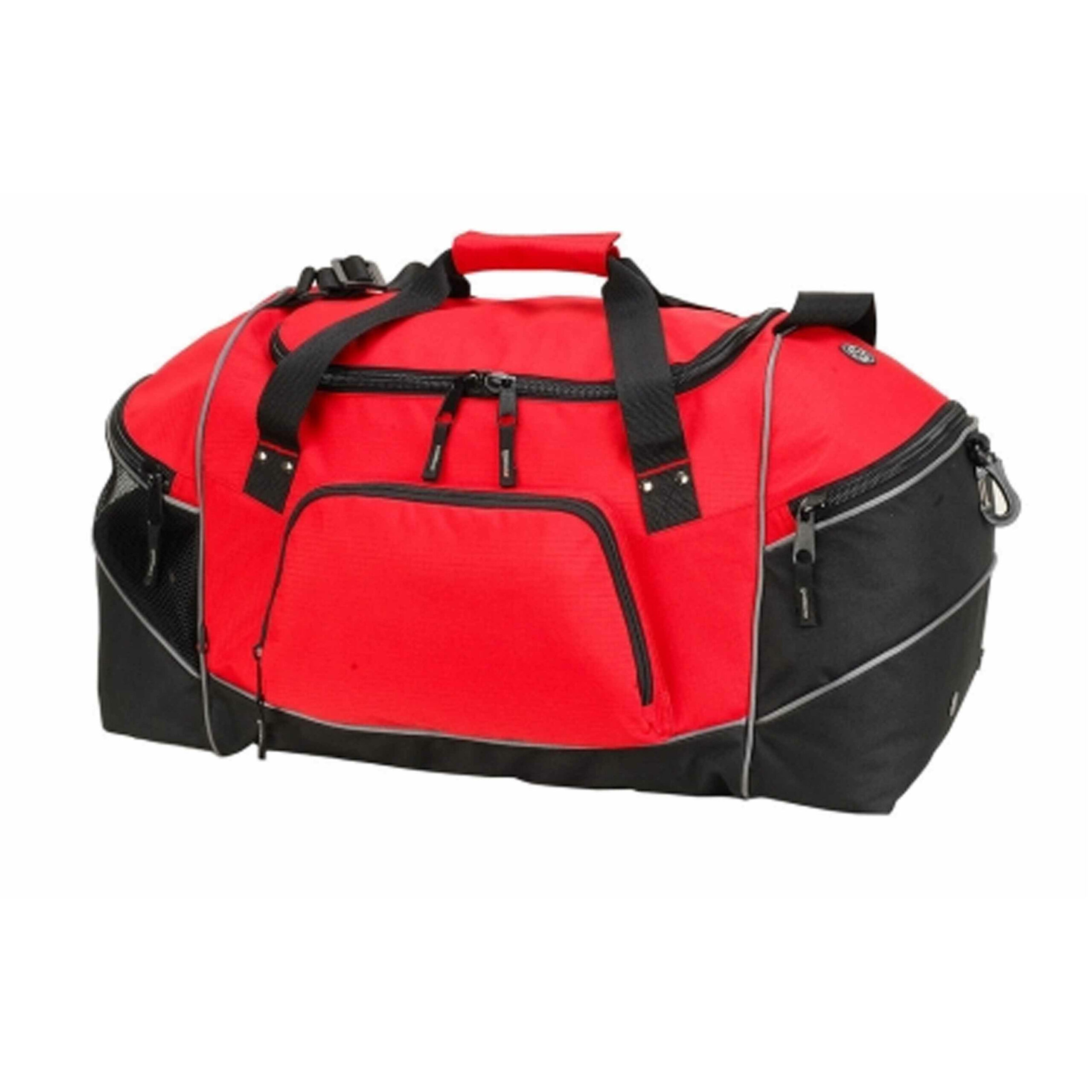 Reistas/weekendtas of sporttas/draagtas model Daytona. Lekker ruime tas met 46 liter inhoud en 4 opbergvakken. Deze handige multifunctionele tas is gemaakt van polyester. Afmetingen: 60 x 31 x 27 cm. Kleur: rood/zwart. Hoofdcompartiment en zijvakken met ritssluiting. Stevige, nylon draaghengsels met klittenbandsluiting. Inclusief verstelbare schouderriem, verharde bodem, karabijnhaaksluiting en bijpassend schouderstuk. Versterkte basis. Kortom, een top reis of sporttas.