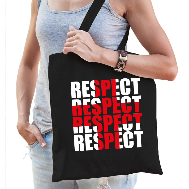 Dit zwart katoenen tasje is eenzijdig bedrukt met de tekst: Respect.