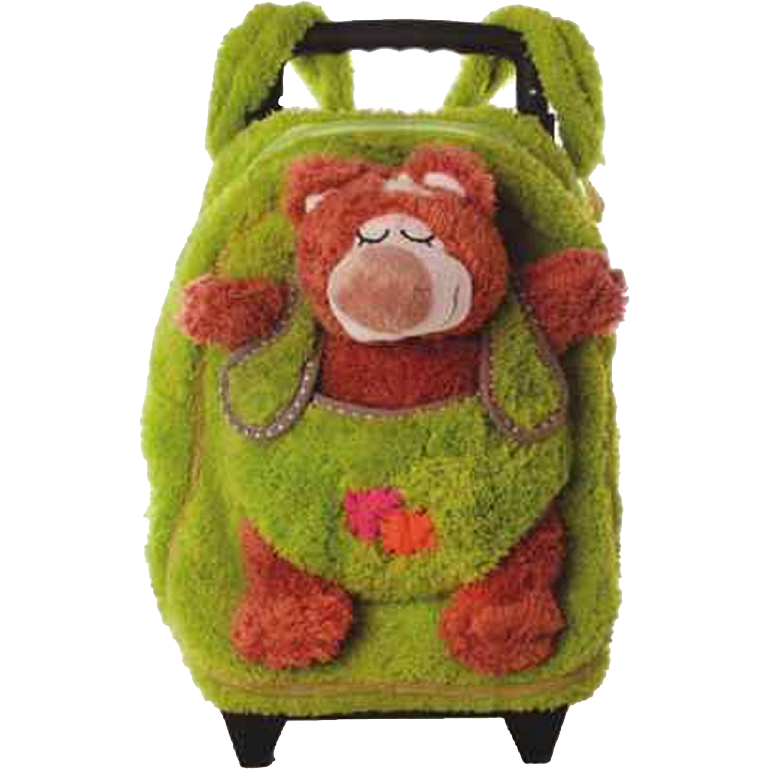 Rugzaktrolley kinderkoffer met een pluche beer knuffel voor jongens en meisjes. Met deze kindertrolley kan zelfs de kleinste reiziger onder ons met zijn of haar eigen koffer op vakantie. De rugzaktrolley heeft wieltjes en een uitschuifbaar handvat waardoor deze te gebruiken is als trolley koffer maar ook als rugtas. Kleur: groen met oranje beer. Materiaal: kunststof en polyester. Afmeting: 35 x 25 x 13 cm.