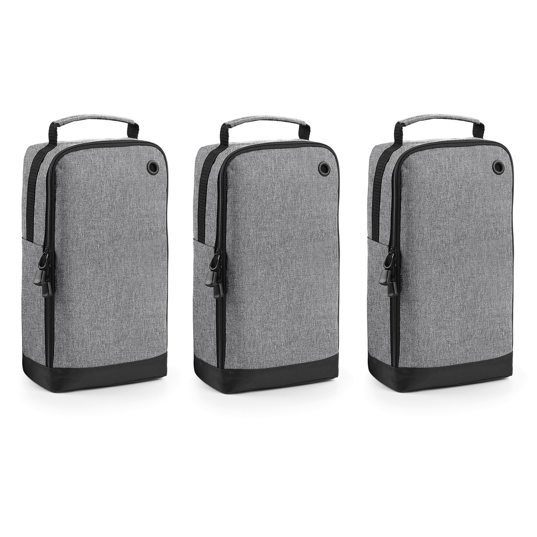 3 stuks schoenentas van 8 liter, in het grijs, voor 1 paar schoenen. Voorzien van grote ritssluiting. Inhoud: 8 liter. Formaat: 35 x 19 x 12 cm. Materiaal: 100% polyester 420D. Reistas/opbergtas voor schoenen.
