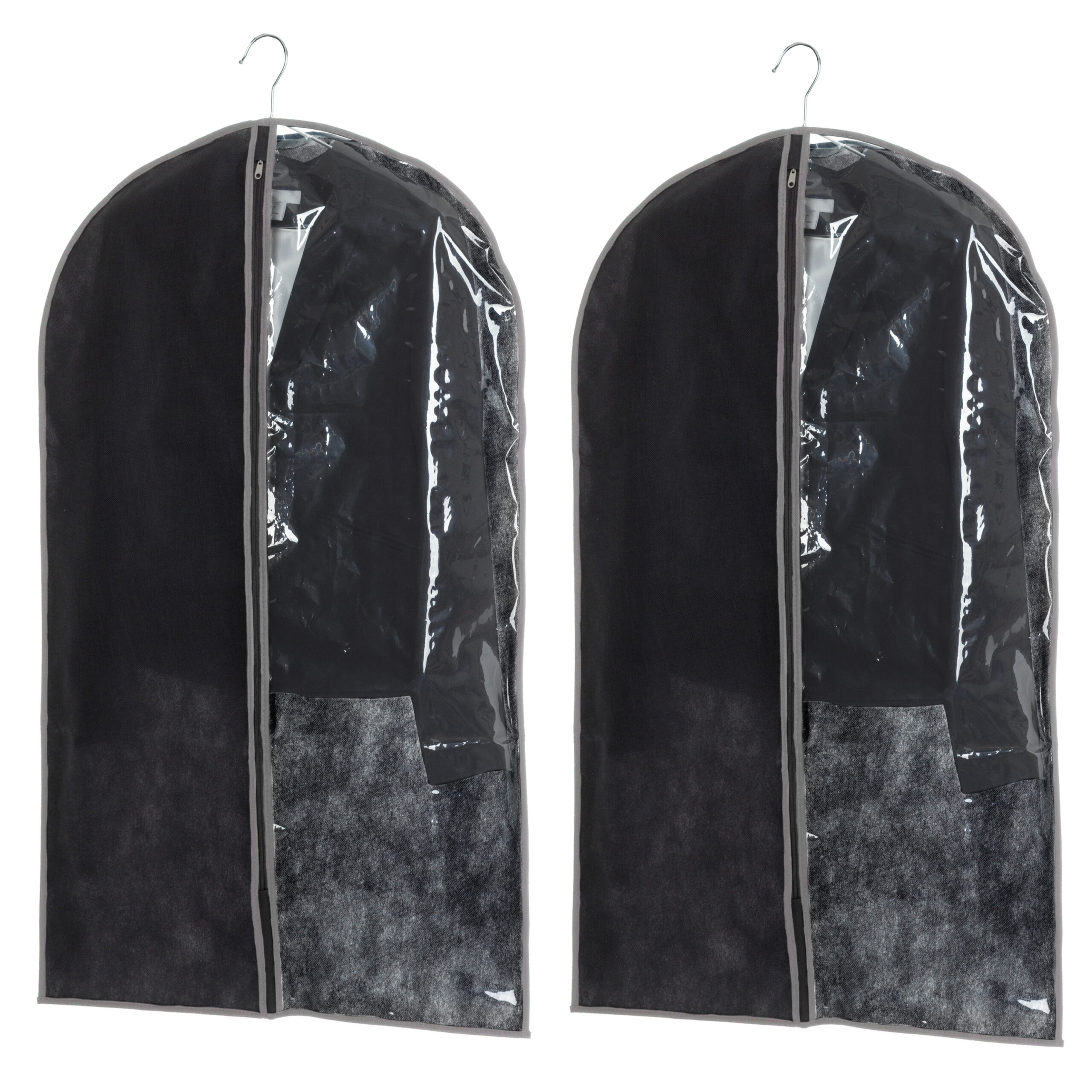 Set van 2x stuks kleding/beschermhoezen pp zwart 100 cm. Kledinghoes om uw kleding netjes te houden of op een nette manier te vervoeren. Formaat hoes ca. 100 x 60 cm. Gewicht: 92 gram.