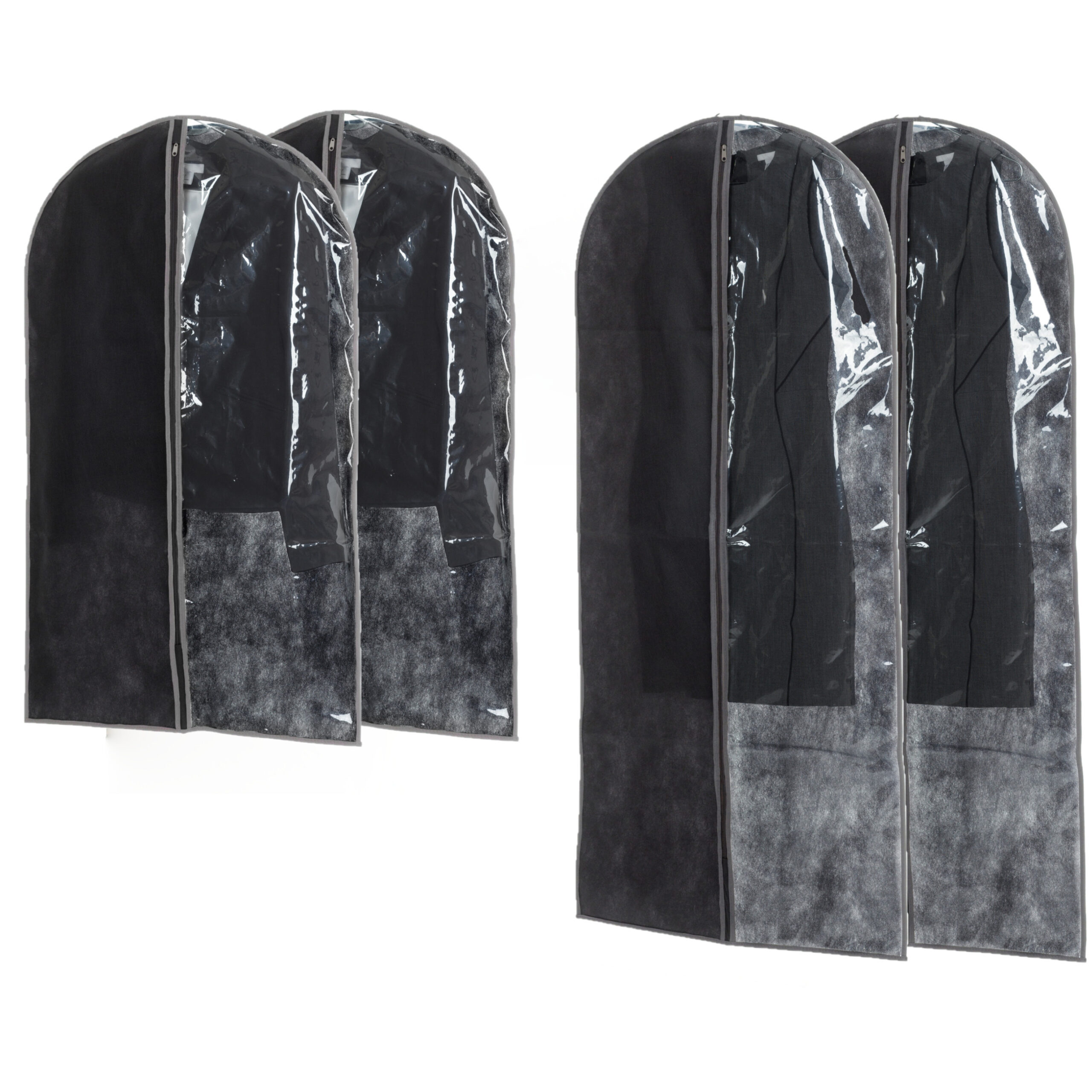 Set van 6x stuks kledinghoezen grijs 135/100 cm inclusief kledinghangers. Kledinghoezen om uw kleding netjes te houden of op een nette manier te vervoeren. Formaat hoezen ca. 135 x 60 cm en 100 x 60 cm. Gewicht: 200 gram. Inclusief kunststof kledinghangers zwart 41 cm. Afmetingen per hanger: 41,5 x 2 x 19 cm. , Dit artikel bestaat uit:, 3x Plasticforte Kledinghangers – 2x – zwart – kunststof – 41 cm, 3x Set van 2x stuks kleding/beschermhoezen pp grijs 135/100 cm