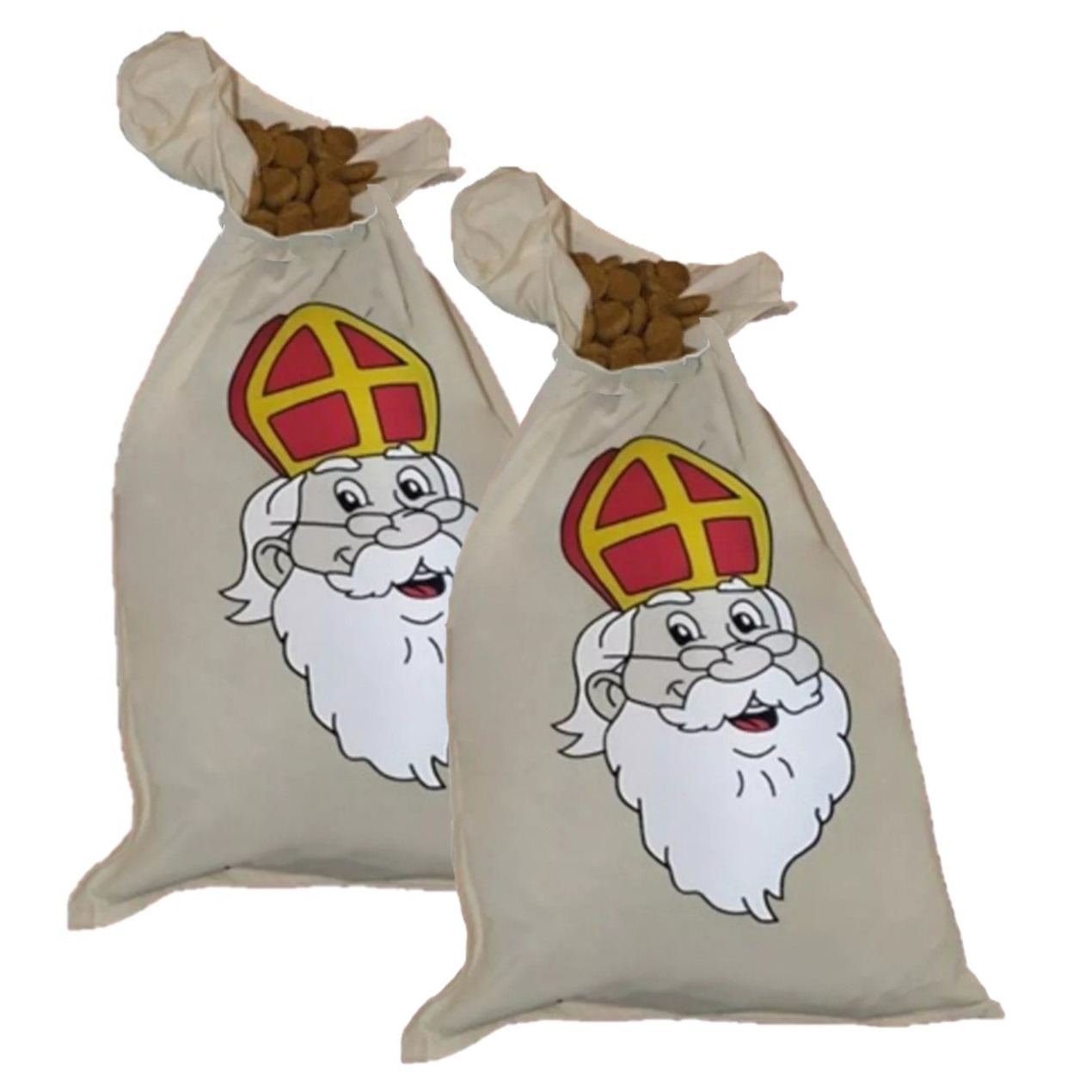 2x sinterklaas strooizak voor snoep. Met deze katoenen strooizak ben je helemaal klaar om het strooigoed rond te delen tijdens Sinterklaasvieringen. De zak is voorzien van een eenvoudige sluiting en heeft een handig formaat van 35 x 60 cm. Ideaal voor het meenemen en uitdelen van pepernoten, schuimpjes en ander lekkers. Onmisbaar voor Sinterklaas en Pieten tijdens huisbezoeken en feestjes.