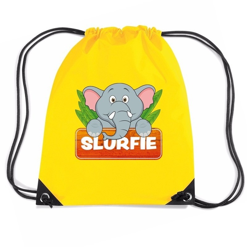Slurfie de Olifant rugtas / gymtas geel voor kinderen. Dit gele rugzakje is bedrukt met je favoriete dierenvriendje, Slurfie de Olifant. Deze trekkoord rugzak is ideaal als gymtas, zwemtas of sporttas. De nylon rugzak is van waterafstotende stof en heeft rijgkoord. De inhoud van de gymtas is ongeveer 11 liter en de afmeting 45 x 34 cm.