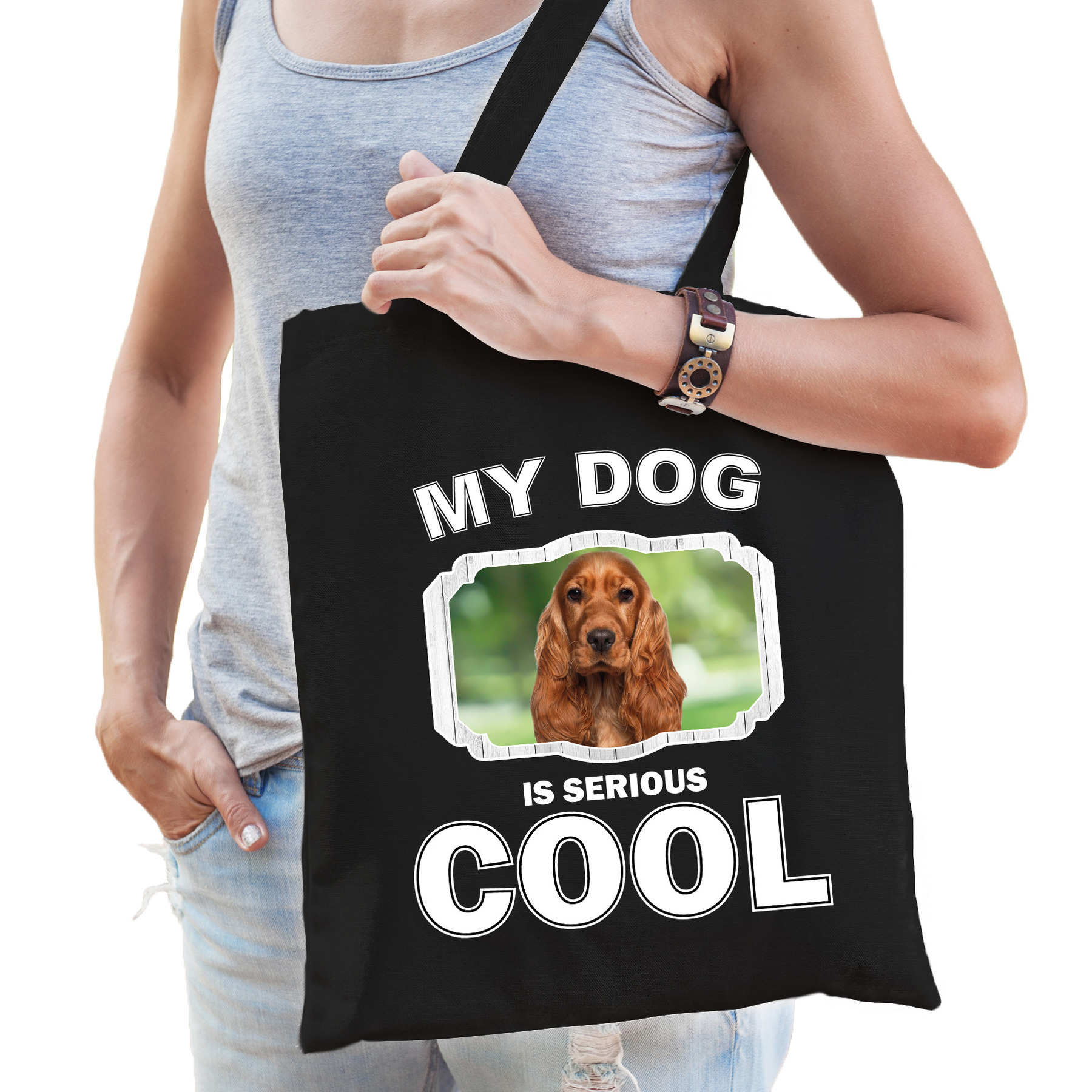 Spaniel honden tasje zwart volwassenen en kinderen. Op deze tas staat een Spaniel afbeelding en de tekst: my dog is serious cool. Een musthave voor een echte dieren/ Spaniels liefhebber of iemand die alles van honden spaart. Erg leuk om cadeau te doen aan een echte Spaniels fan of gewoon om zelf te gebruiken!