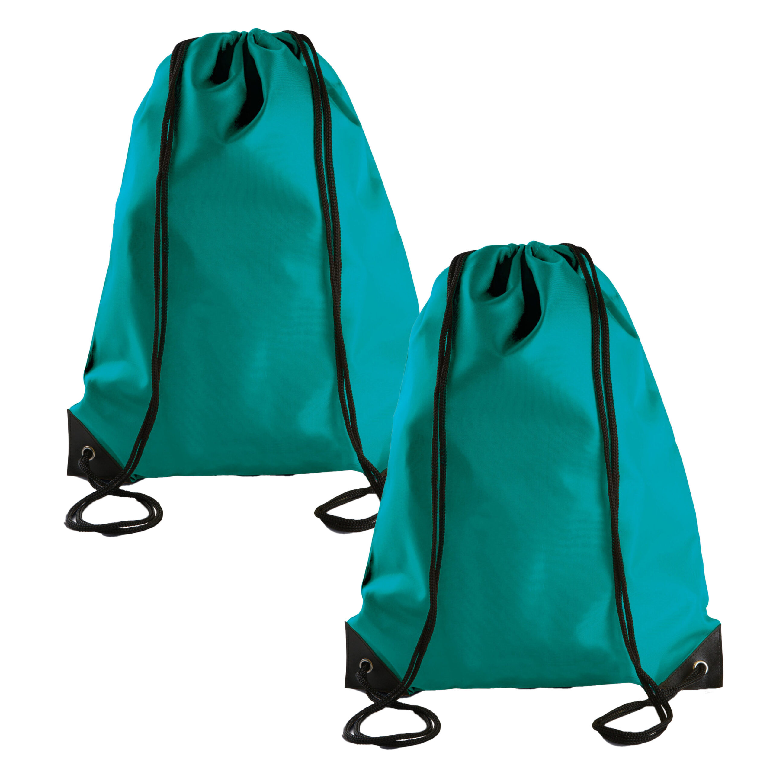 2x sport gymtas/draagtas in de kleur smaragd groen met handig rijgkoord en een afmeting van 34 x 44 cm. Gemaakt van polyester met verstevigde hoeken. Eenvoudige rugtas voor sport, zwemmen en of voor een festival/carnaval. Deze tas is waterbestendig. Geschikt voor kinderen en volwassenen voor diverse toepassingen.
