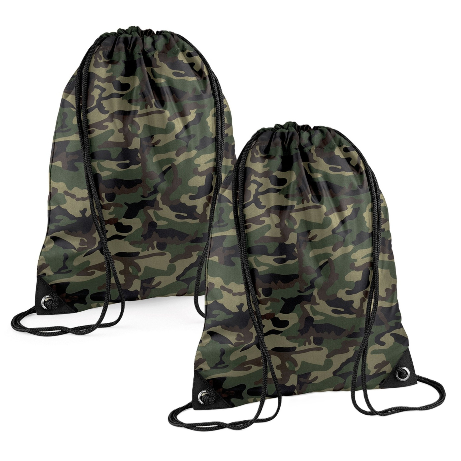 2x sport gymtas jungle camouflage met rijgkoord. Nylon gymtas van waterafstotende stof en rijgkoord. De inhoud van de gymtas is ongeveer 12 liter. De gymtasjes zijn in zeer veel kleuren leverbaar. Afmeting formaat van zwem/opberg/gymtassen is ongeveer 45 x 34 cm. Voor kinderen en volwassenen.
