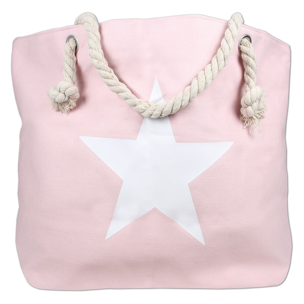 Strandtas roze met ster. Afmeting ca: 37 x 54 cm. Materiaal: polyester. Soort sluiting: ritssluiting. Ook ideaal te gebruiken als boodschappentas.