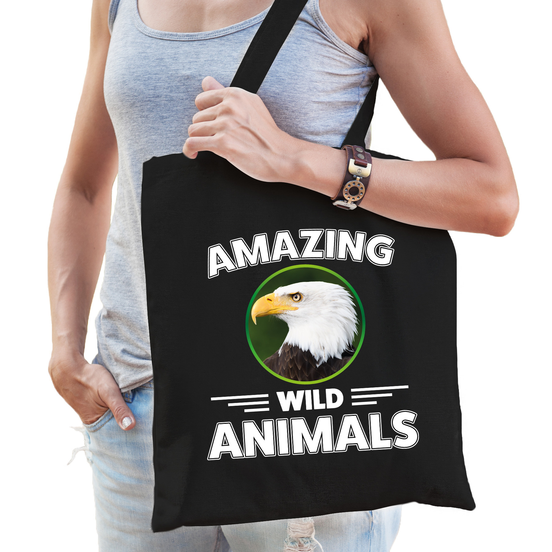 Tasje arend roofvogels amazing wild animals zwart voor volwassenen en kinderen. Op deze dieren tas staat een afbeelding van een zeearend en de tekst: amazing wild animals. Een musthave voor een echte dieren / arend roofvogels liefhebber of iemand die alles van arend roofvogels spaart. Erg leuk om cadeau te doen aan een echte arend roofvogels fan of gewoon om zelf te dragen!