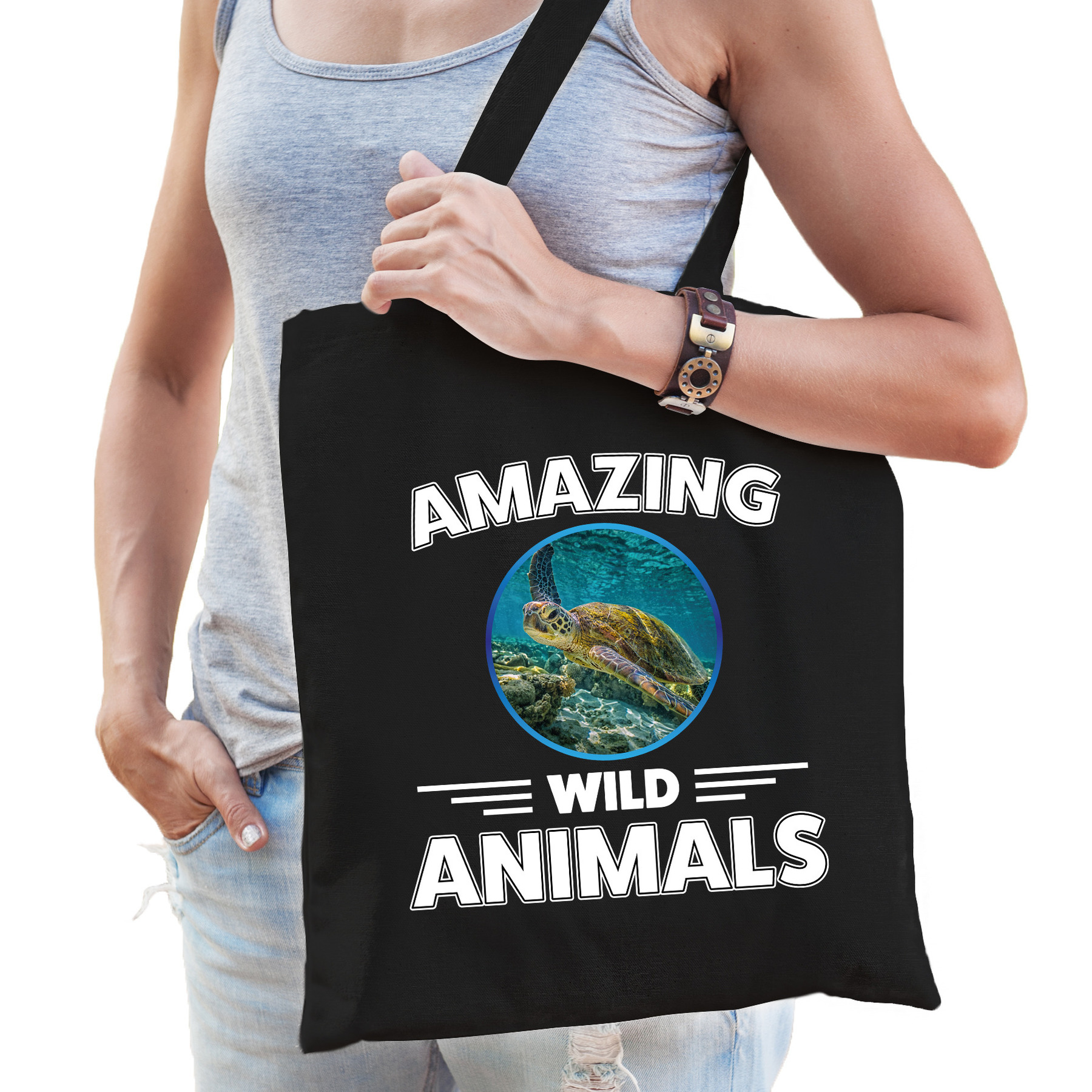 Tasje schildpadden amazing wild animals zwart voor volwassenen en kinderen. Op deze dieren tas staat een afbeelding van een schildpad en de tekst: amazing wild animals. Een musthave voor een echte dieren / schildpadden liefhebber of iemand die alles van schildpadden spaart. Erg leuk om cadeau te doen aan een echte schildpadden fan of gewoon om zelf te dragen!