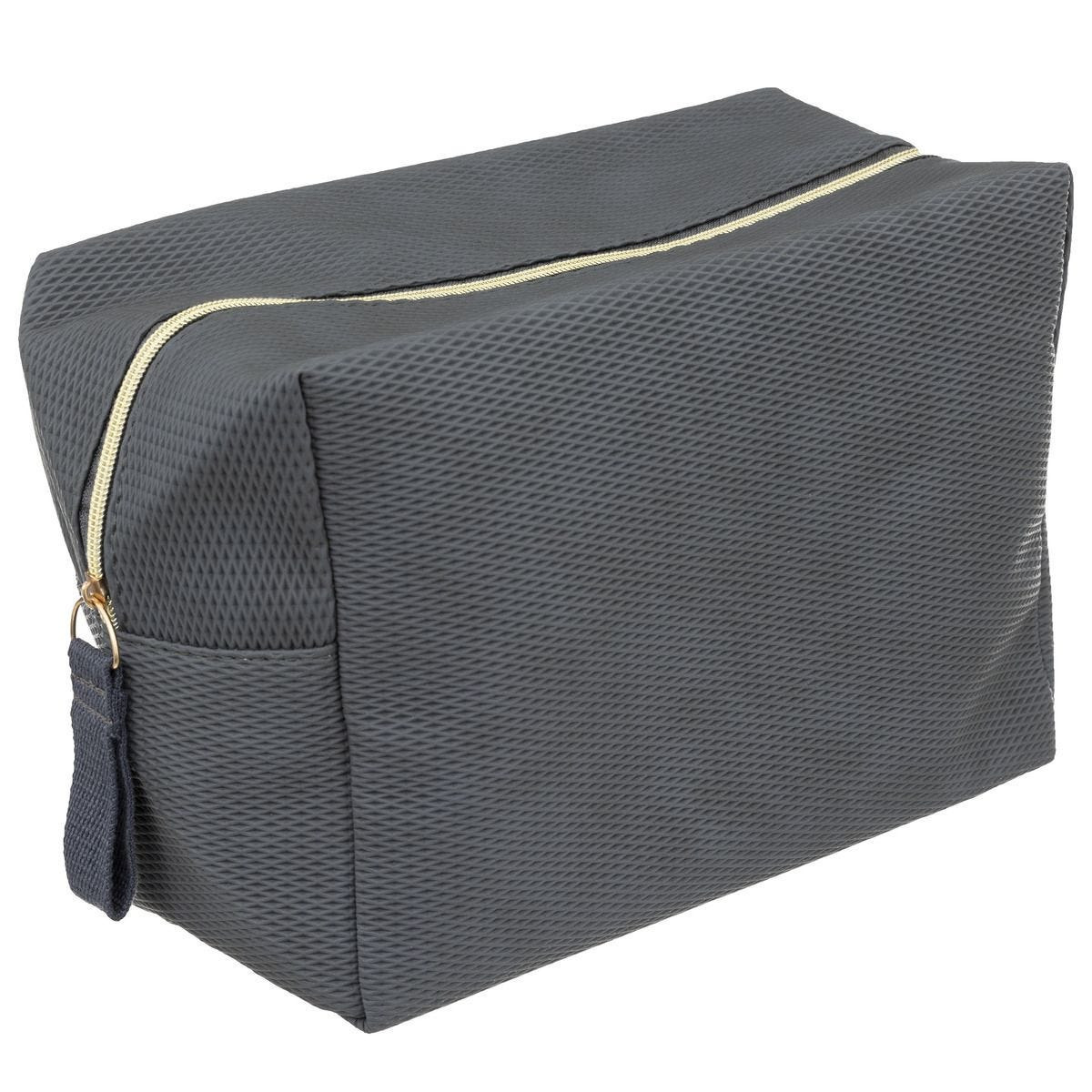 Toilettas/make-up etui/opberg tasje grijs 20 x 15 x 30 cm. Handige toilettas voor op vakantie of op reis, om uw make-up en andere verzorgingsproducten in te bewaren. Materiaal: polyester. Handbagage reis vakantie accessoires toilettassen/make-up tasjes.