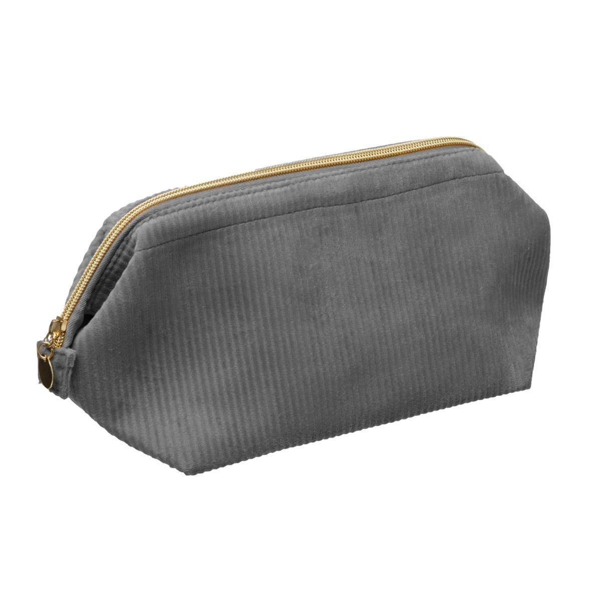 Toilettas/make-up etui/opberg tasje ribstof grijs 31 x 11 x 14 cm. Handige toilettas voor op vakantie of op reis, om uw make-up en andere verzorgingsproducten in te bewaren. Materiaal: corduroy. Handbagage reis vakantie accessoires toilettassen/make-up tasjes.