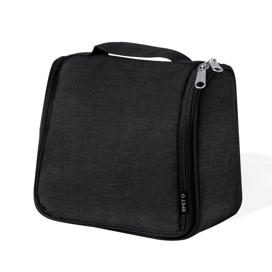 Toilettas of Make-up tas Traveler in de kleur zwart met enkele rits, diverse binnenvakken en een haak zodat de tas kan hangen. Toilettas met zeer mooie luxe afwerking. Het tasje is gemaakt van hoogwaardig polyester (300D). Formaat: ca. 20 x 16 x 7 cm. Inhoud: ca. 2.5 liter. Wordt geleverd exclusief inhoud. Toilettas / make-uptas voor thuis en/of op reis. Geschikt voor kinderen en volwassenen.