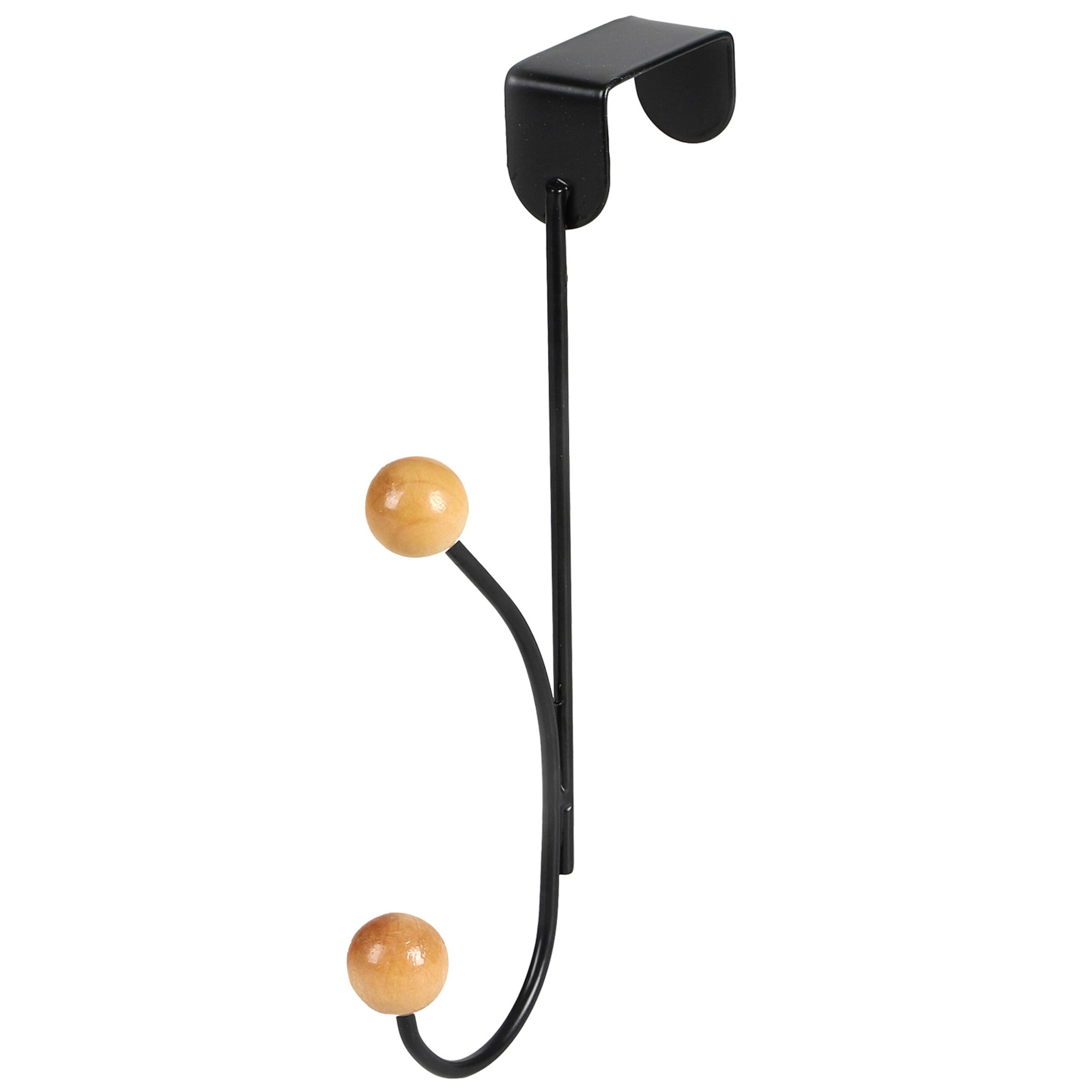 Deurkapstok van metaal met 2 ophangknoppen van hout in de kleur zwart. Organiseer je ruimte effici?nt en stijlvol met deze praktische deurkapstok. Uitgevoerd in een zwarte kleur, biedt deze kapstok met twee ophang knoppen een eenvoudige en effectieve oplossing voor het ophangen van jassen, tassen, handdoeken en meer. Gemaakt van metaal, is deze kapstok stevig en betrouwbaar, ideaal voor dagelijks gebruik in verschillende kamers van je huis. Geschikt voor een stompe deur met een maximale dikte van 4 cm. Afmeting: ca. 19 cm. Materiaal: metaal/hout.