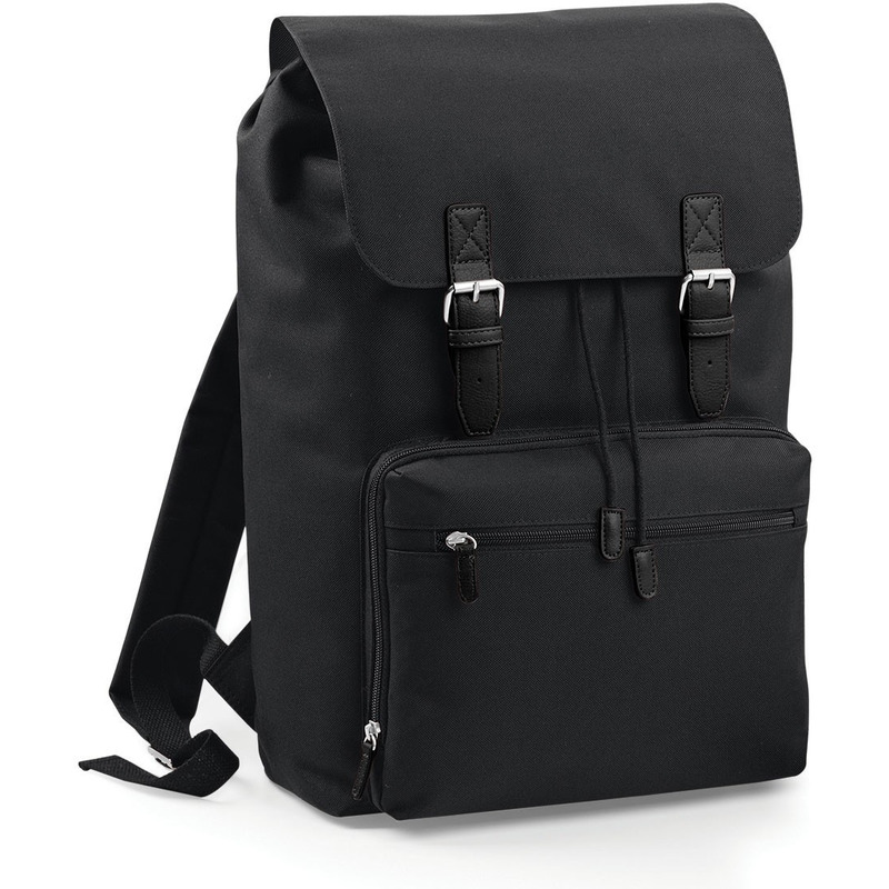 Vintage schooltas rugzak/rugtas, in de kleur zwart. Deze tas heeft een hoofdvak met koordsluiting en een voorvak met ritssluiting. De schooltas heeft een apart gevoerd laptop compartiment, geschikt voor een laptop/tablet tot 17 inch. Dit rugzakje/rugtasje heeft een formaat van ongeveer 30 x 49 x 17 cm, ideaal dus om je tablet/laptop en/of schoolboeken in op te bergen. Materiaal: polyester. Inhoud: 18 liter. Rugzakken/schooltassen in de kleur zwart.