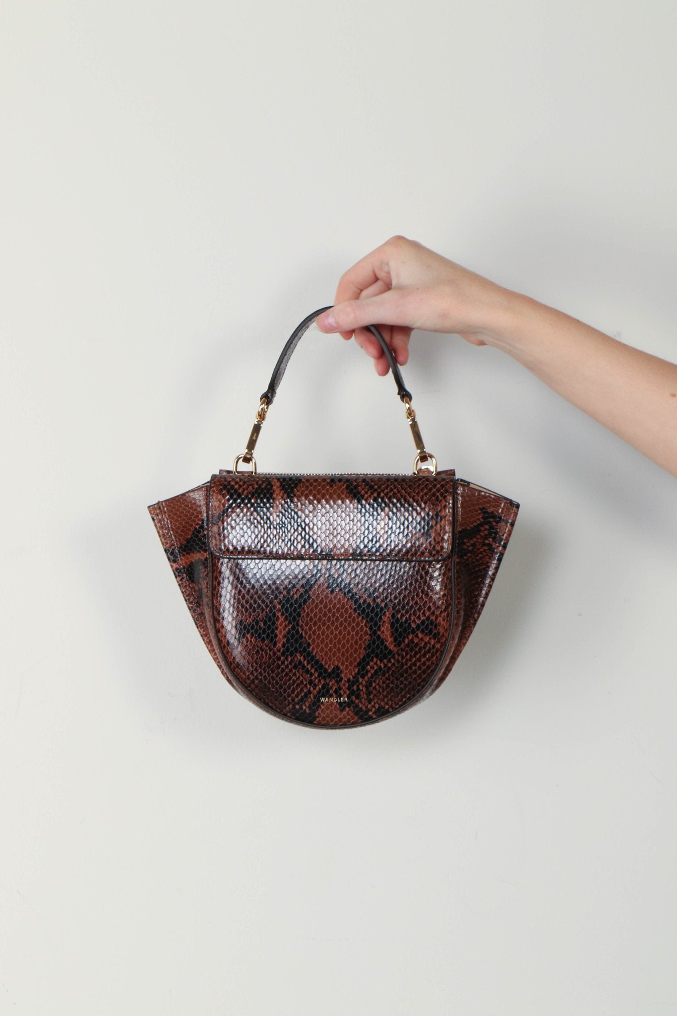 Wandler Tas Hortensia mini in de kleur Bruin. Stofsamenstelling: 100% leer Afmetingen: breedte: 37cm, hoogte: 24cm, diepte: 7cm Gouden details Magnetische sluiting Zowel als hand- en crossbody te dragen Hand en verstelbare leren schouderriem Snake leer Over Wandler Wandler (https://www.bylotte.nl/brands/wandler/?gclid=EAIaIQobChMIgN6_z9j2hwMVeTsGAB0KpArDEAAYASAAEgLJs_D_BwE&utm_source=google&utm_medium=cpc&&gclid=EAIaIQobChMIgN6_z9j2hwMVeTsGAB0KpArDEAAYASAAEgLJs_D_BwE&utm_source=google&utm_medium=cpc&&gclid=EAIaIQobChMIgN6_z9j2hwMVeTsGAB0KpArDEAAYASAAEgLJs_D_BwE&utm_source=google&utm_medium=cpc&) is toegewijd aan oprechte kwaliteit, elk ontwerp is handgemaakt in italie. Elza Wandler lanceerde haar naamgenoot merk Wandler eind 2017. Geboren en getogen in het zuiden van Nederland, werkt en woont de ontwerpster momenteel in Amsterdam. Wandler presenteert zes collecties per jaar en biedt luxe tassen en schoenen.