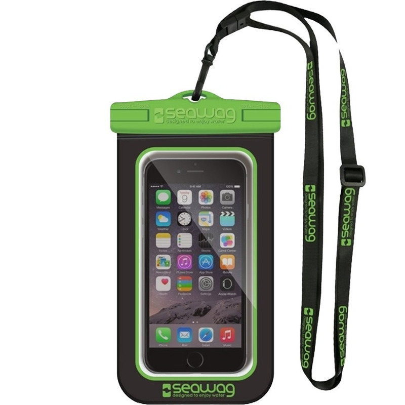 Waterproof hoesje voor smartphone/mobiele telefoon. Universele waterdichte hoes/sleeve die uw telefoon beschermt tegen water, zand, sneeuw en stof. Handige gadget voor op vakantie. Het transparante plastic behoudt de touchscgreen functies op het telefoonscherm: u kunt uw telefoon bedienen door de hoes heen. Met aangehechte, verstelbare, polsband zodat u uw telefoon niet kunt laten vallen. Kleur: zwart/groen. Materiaal: polyester, kunststof. Formaat: 2,2 x 12 x 23 cm (universeel, tot 5,7 inch scherm).