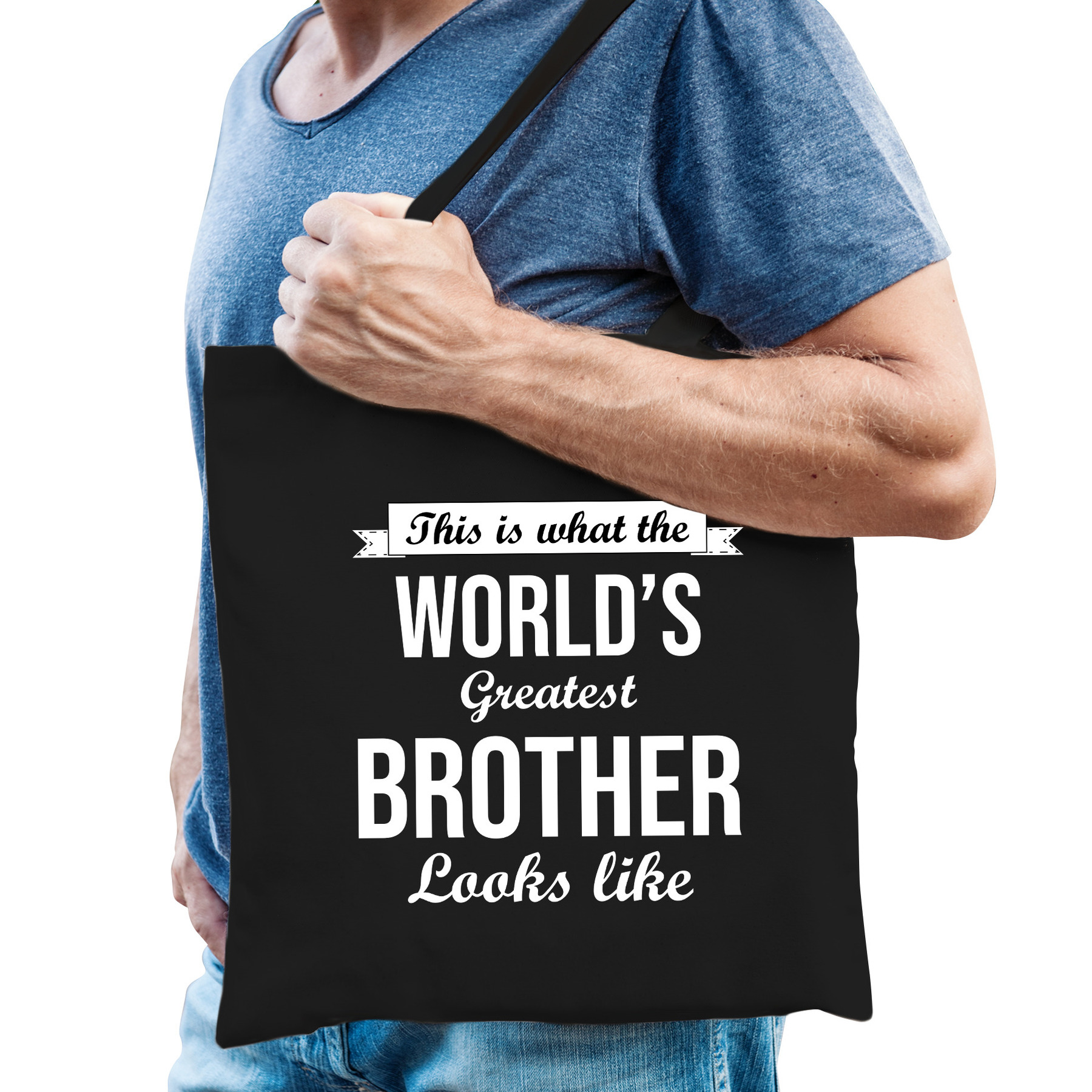 Worlds greatest BROTHER cadeau tas zwart voor heren. Op dit zwarte broers kado tasje staat: This is what the world’s greatest BROTHER looks like. Leuke tas voor een broer / broertje zijn verjaardag of om simpelweg te laten zien hoeveel u om hem geeft.
