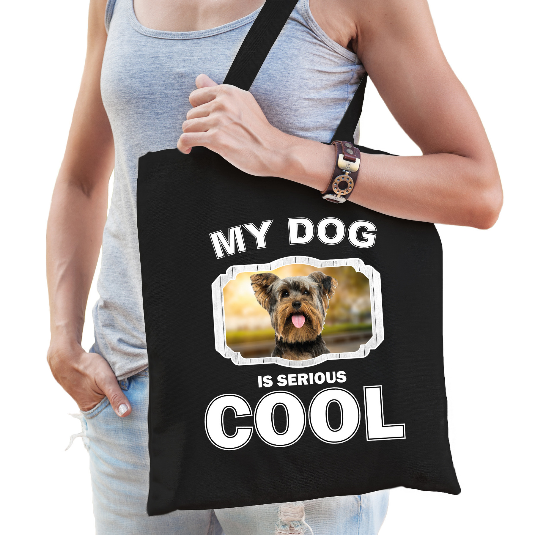 Yorkshire terrier honden tasje zwart volwassenen en kinderen. Op deze tas staat een Yorkshire terrier afbeelding en de tekst: my dog is serious cool. Een musthave voor een echte dieren/ Yorkshire terriers liefhebber of iemand die alles van honden spaart. Erg leuk om cadeau te doen aan een echte Yorkshire terriers fan of gewoon om zelf te gebruiken!