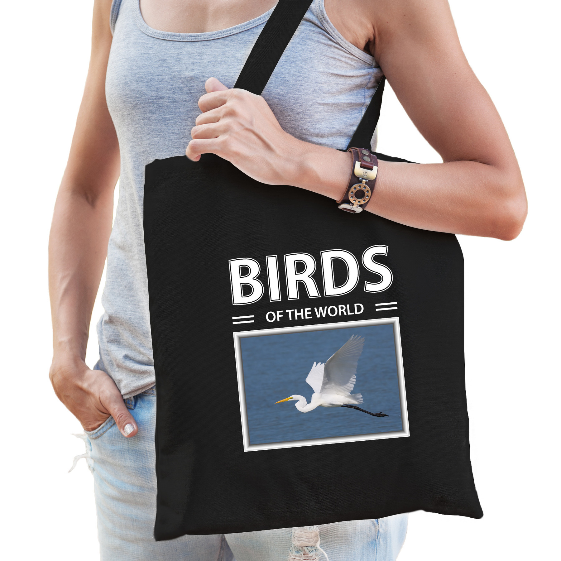 Zilverreiger tasje zwart voor volwassenen en kinderen. Op deze tas staat een Zilverreiger afbeelding en de tekst: birds of the world. Een musthave voor een echte dieren/ Zilverreiger liefhebber of iemand die alles van Zilvereigers spaart. Erg leuk om cadeau te doen aan een echte Zilverreiger fan of gewoon om zelf te gebruiken!