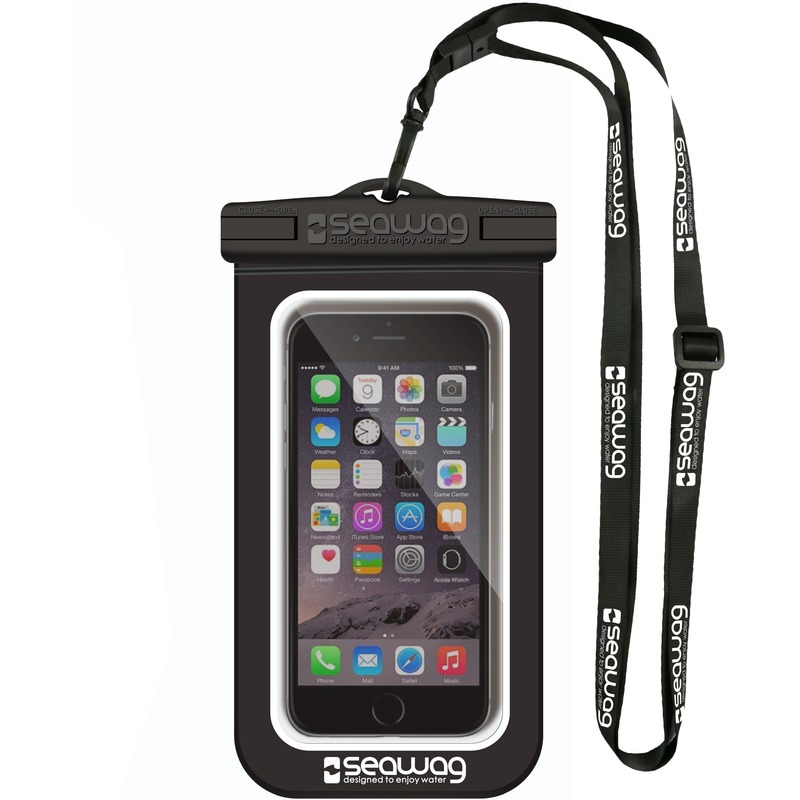 Zwart/wit waterproof festival opbergtasje/hoes 10 x 20 cm. Universele waterdichte hoes/sleeve die uw telefoon en/of andere belangrijke spullen beschermt tegen water, zand, sneeuw en stof. Handige gadget voor op vakantie of voor op een festival. Het transparante plastic behoudt de touchscreen functies op het telefoonscherm: u kunt uw telefoon bedienen door de hoes heen. Met aangehechte, verstelbare, polsband zodat u het geheel niet kunt laten vallen. Kleur: zwart/wit. Materiaal: polyester, kunststof. Formaat: 2,2 x 10 x 20 cm (universeel, tot 5,7 inch scherm telefoon). Merk: Seawag. Waterdichtheid: IPX8, waterdicht tot 25 meter diepte. Gewicht: 56 gram. Waterbestendig hoesje voor watersporters, wintersport of tijdens het duiken op zomervakantie. Handig voor het opbergen van geld, uw paspoort, ID-kaart/identiteitsbewijs of een mobiele telefoon/smartphone.