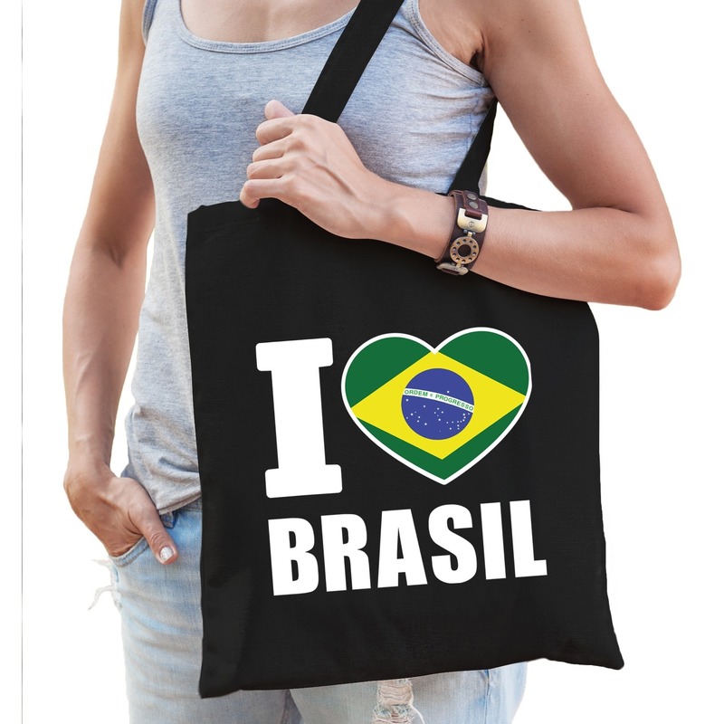 Brazilie schoudertas I love Brasil zwart katoen